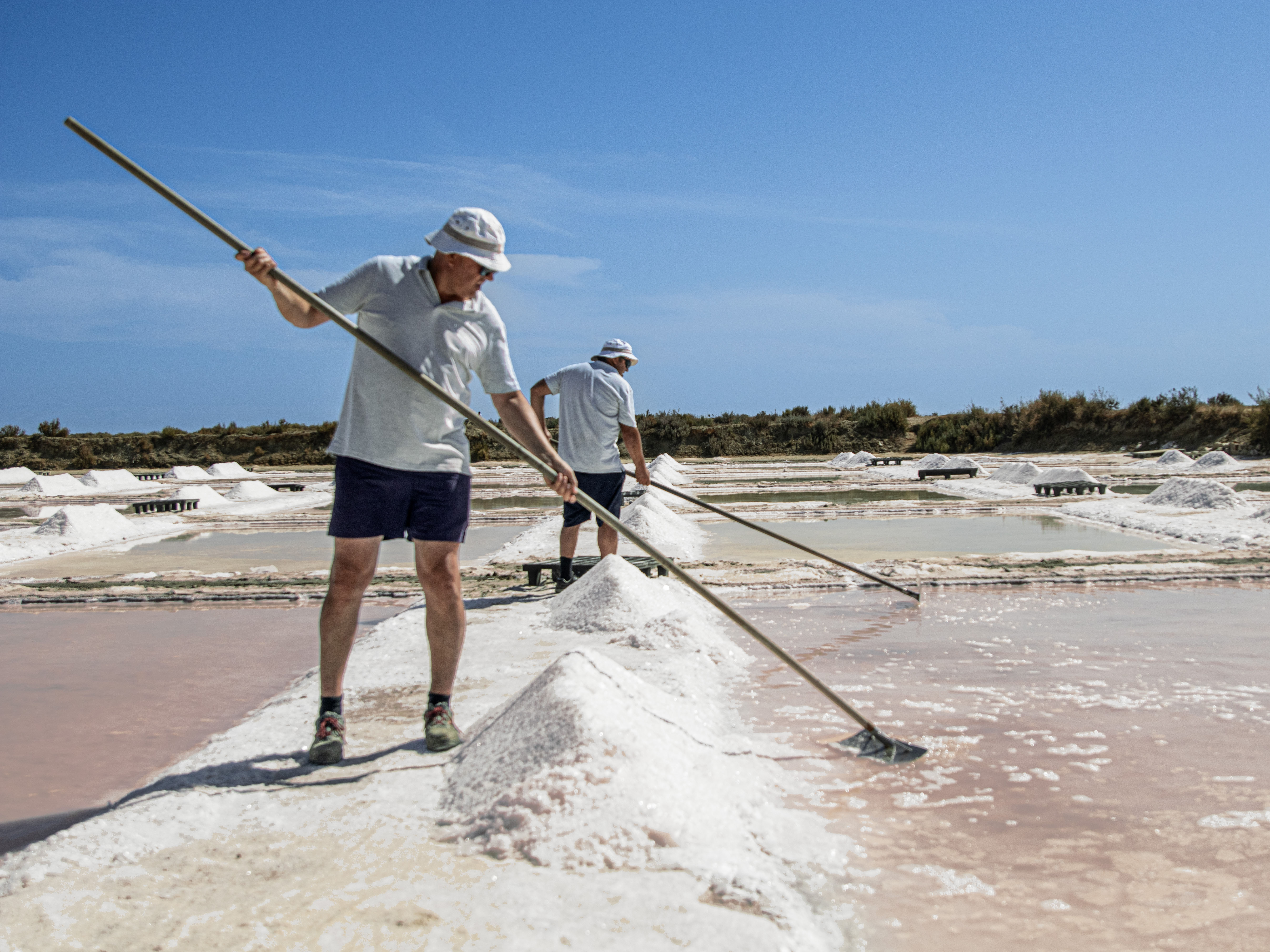 The ’Marnotos’ play a crucial role in this harvesting practice. Using traditional tools, they carefully gather the salt crystals from the ponds. This thorough work ensures that the salt retains its natural, edgy structure.