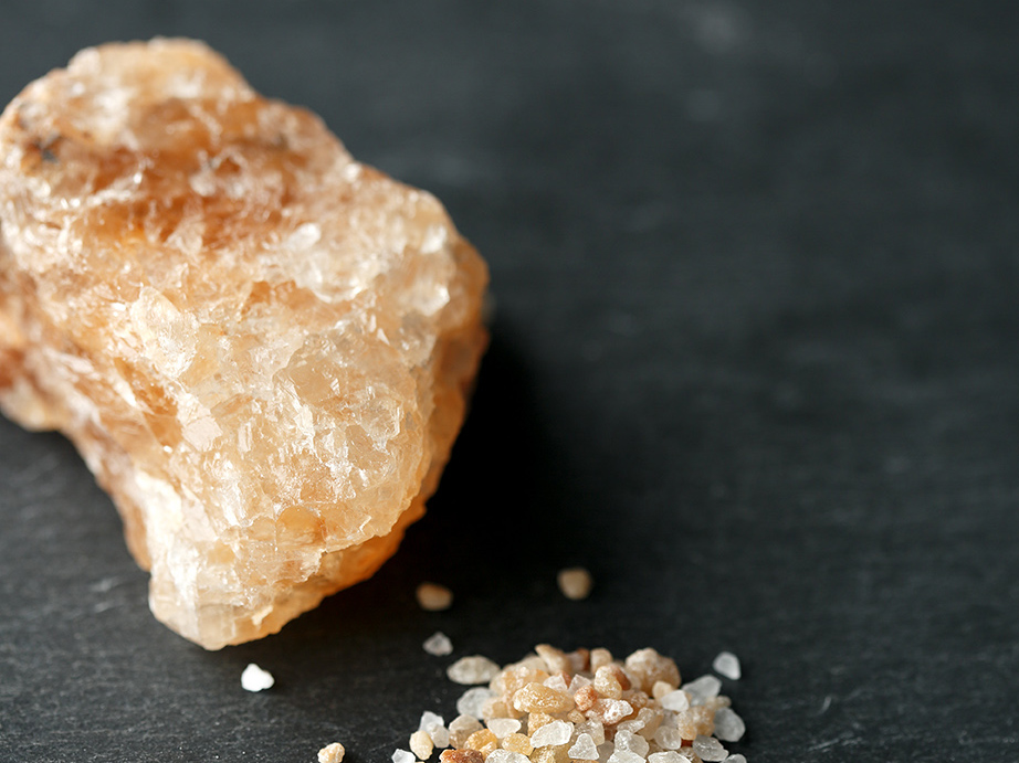 Rock salt is formed where primordial seas evaporated by the sun millions of years ago. What remained was salt, which was covered by layers of earth and rock over the course of time. Today it lies deep underground, where it is brought to the surface by mining.